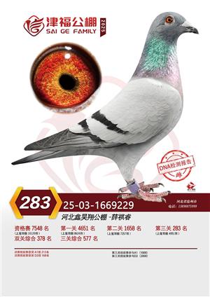 天津津福公棚2025年决赛前800名获奖鸽照片