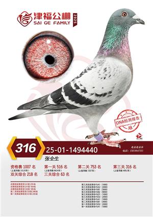 天津津福公棚2025年决赛前800名获奖鸽照片