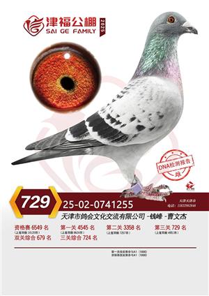天津津福公棚2025年决赛前800名获奖鸽照片