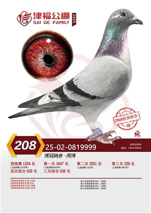 天津津福公棚2025年决赛前800名获奖鸽照片