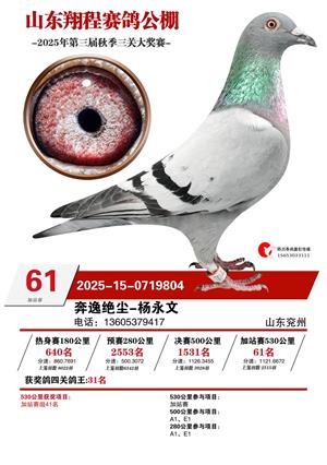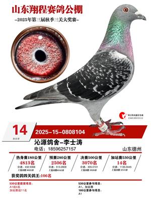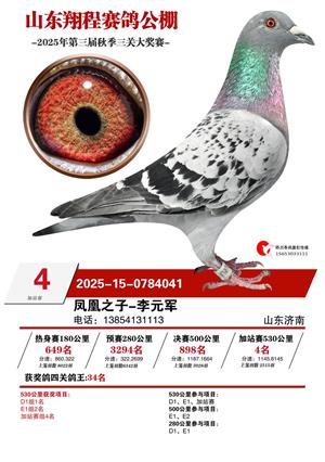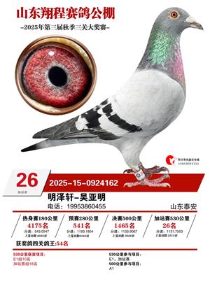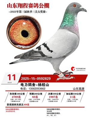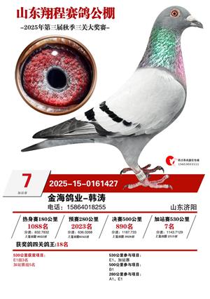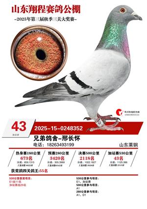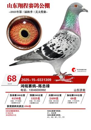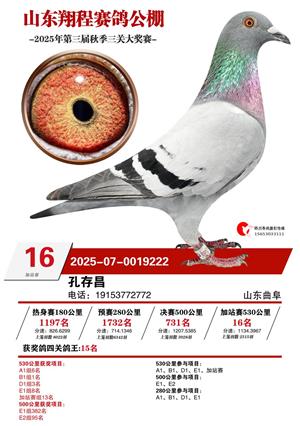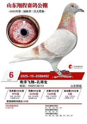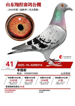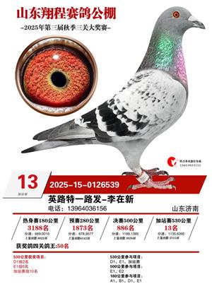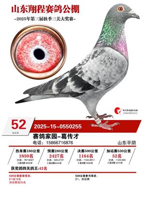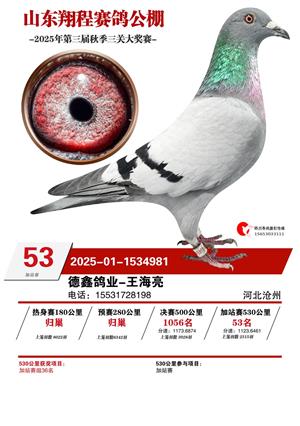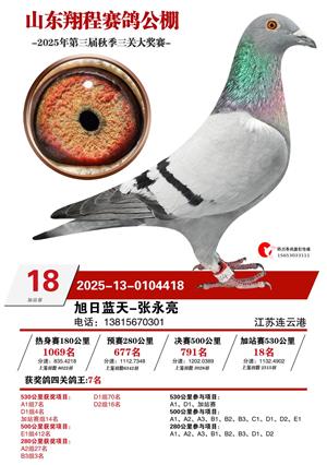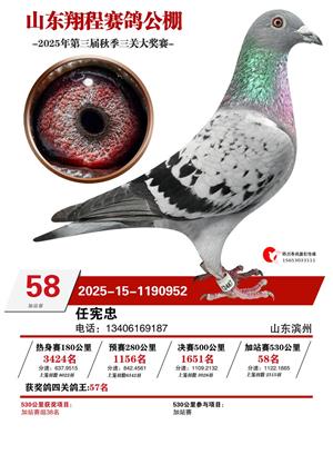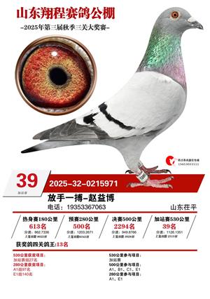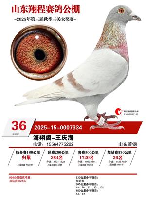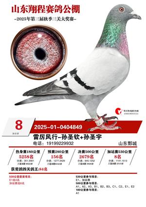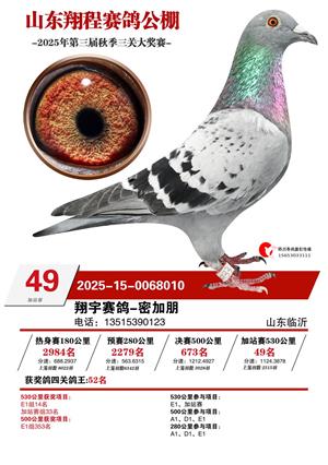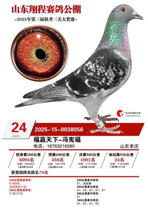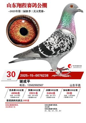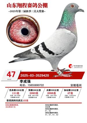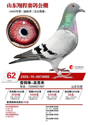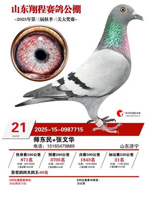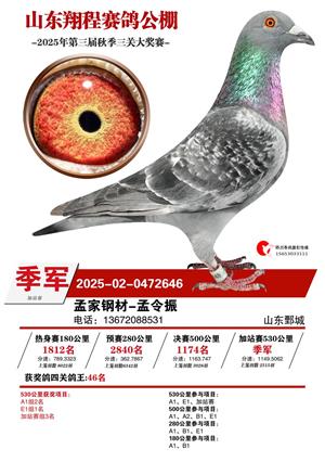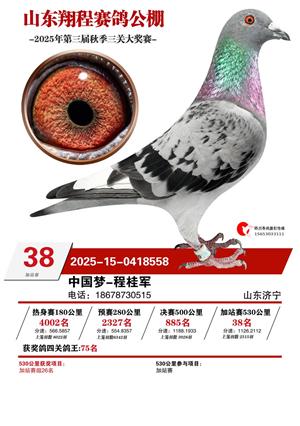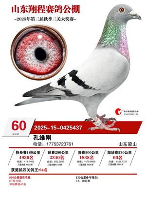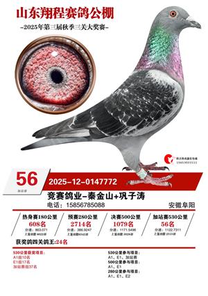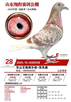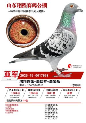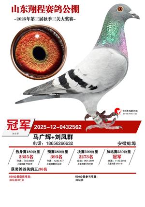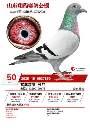 山东翔程公棚2025年第三届秋赛加站赛获奖鸽