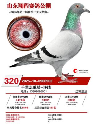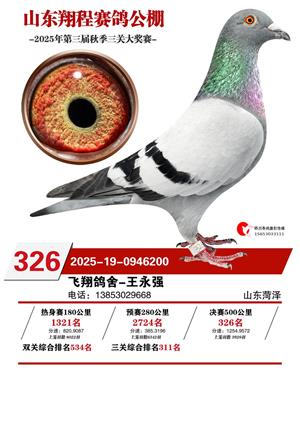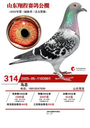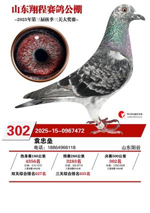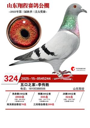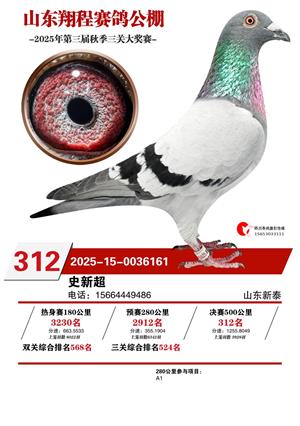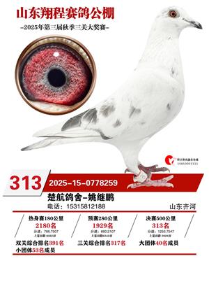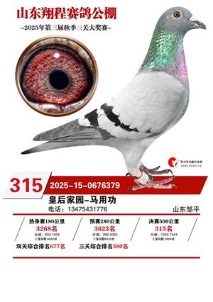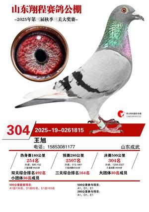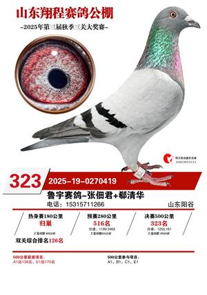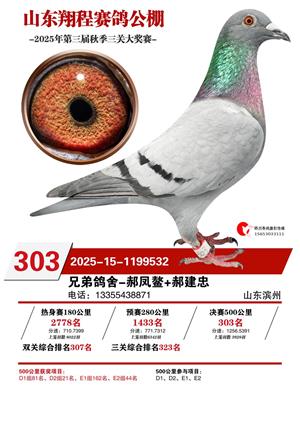 山东翔程赛鸽公棚2025年第三届秋赛获奖鸽照片