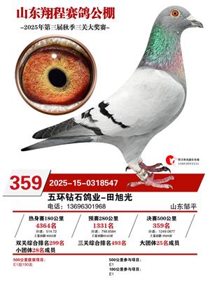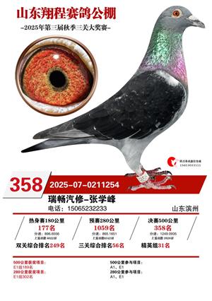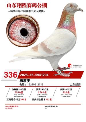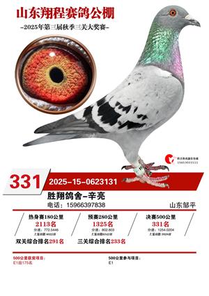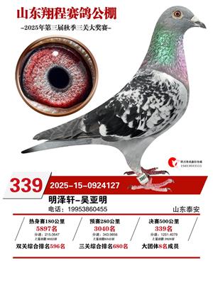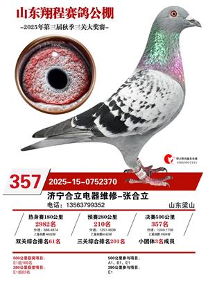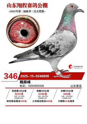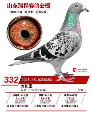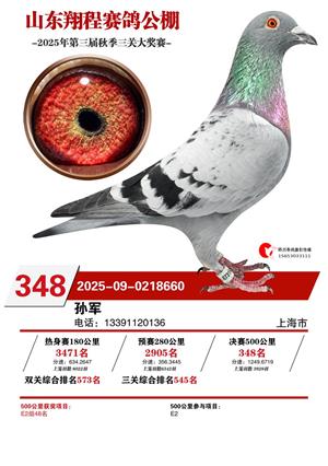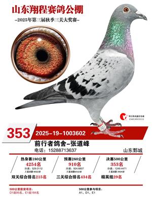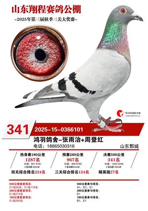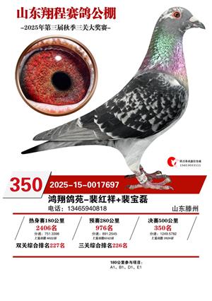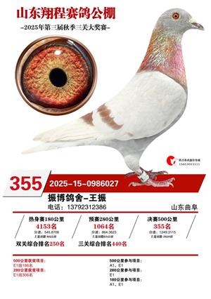 山东翔程赛鸽公棚2025年第三届秋赛获奖鸽照片