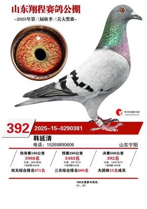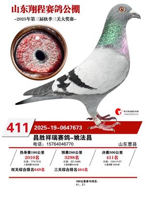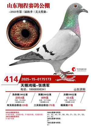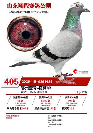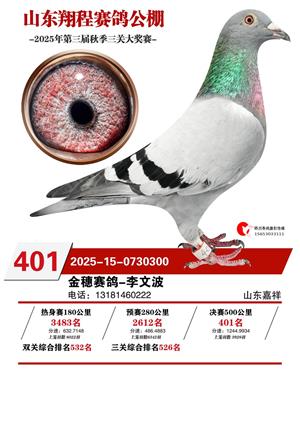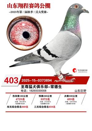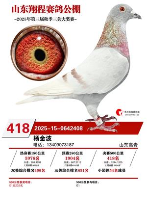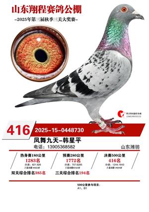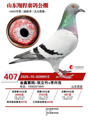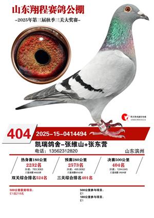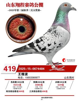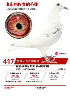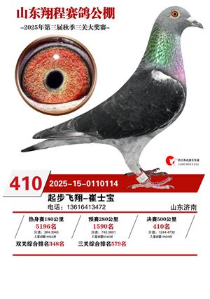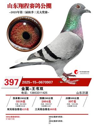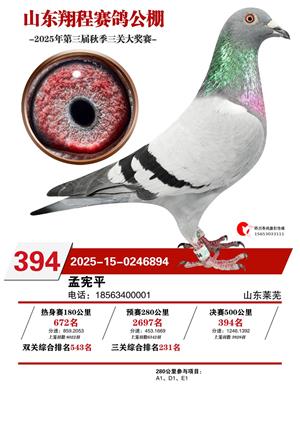 山东翔程赛鸽公棚2025年第三届秋赛获奖鸽照片