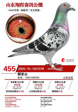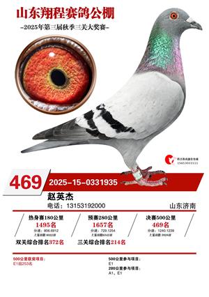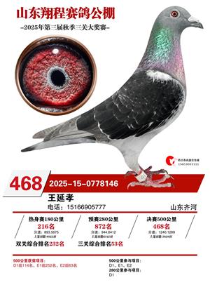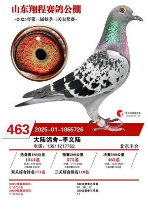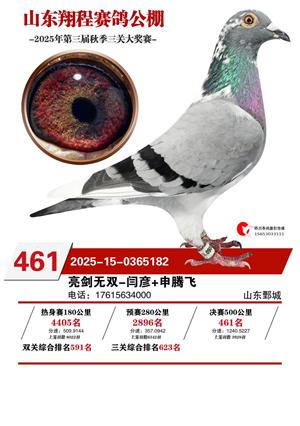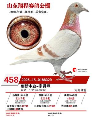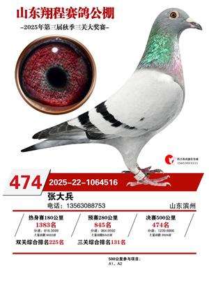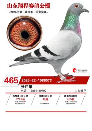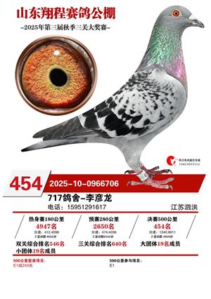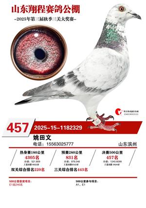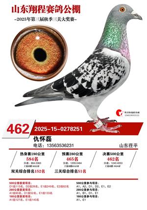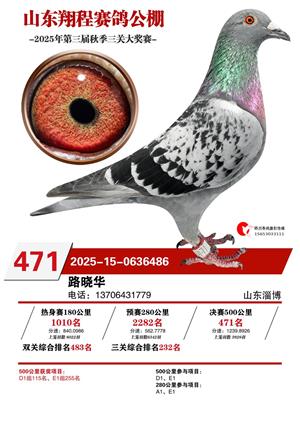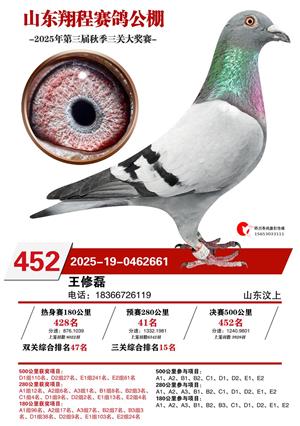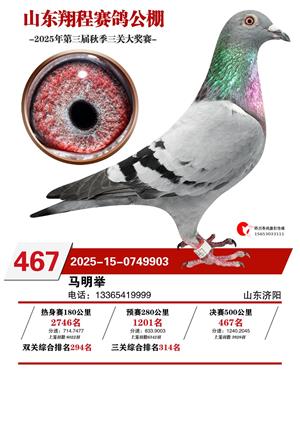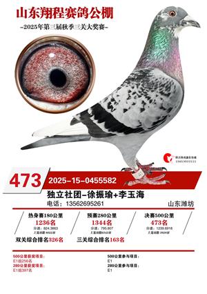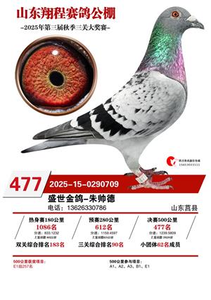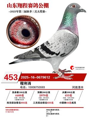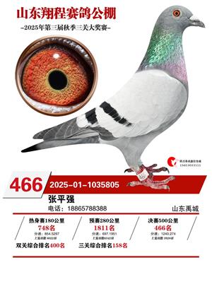 山东翔程赛鸽公棚2025年第三届秋赛获奖鸽照片