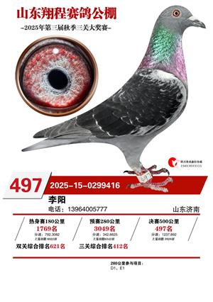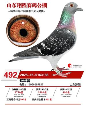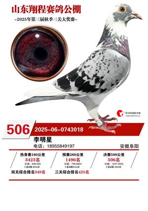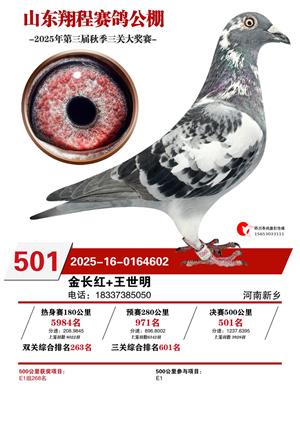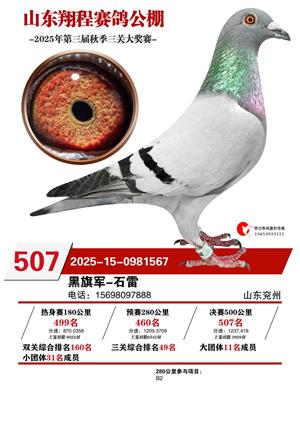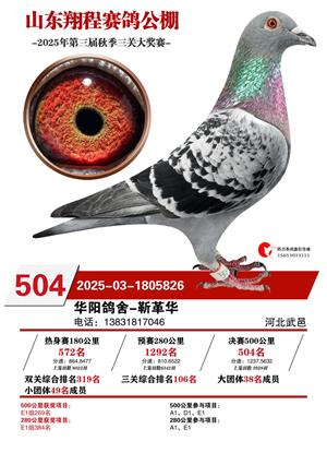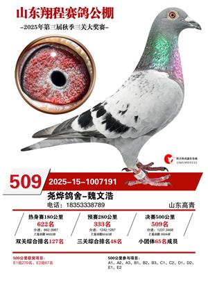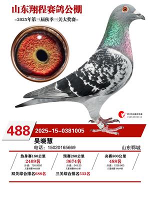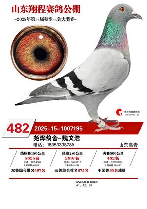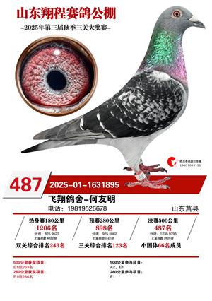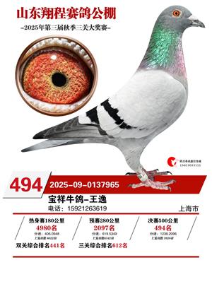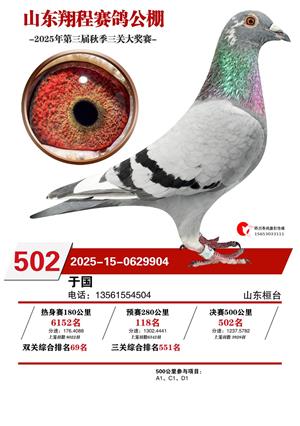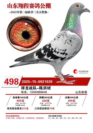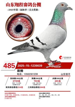 山东翔程赛鸽公棚2025年第三届秋赛获奖鸽照片