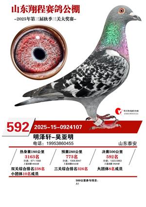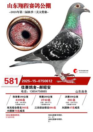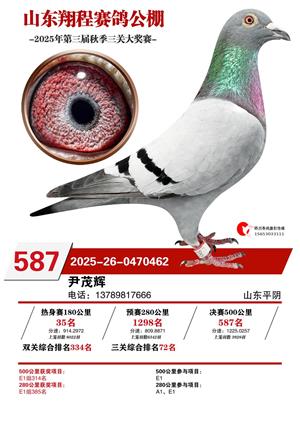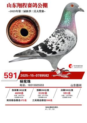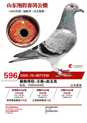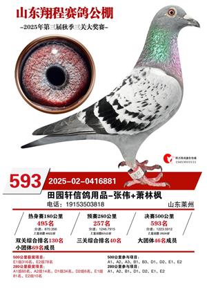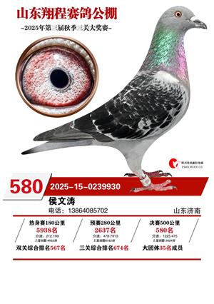 山东翔程赛鸽公棚2025年第三届秋赛获奖鸽照片