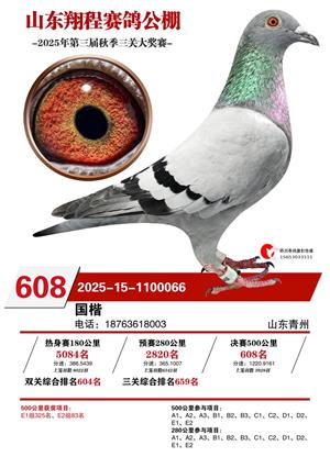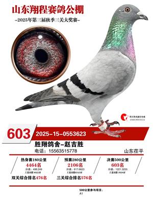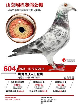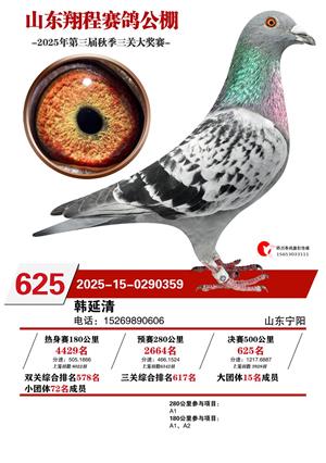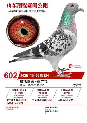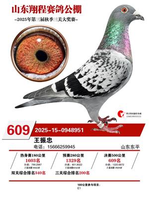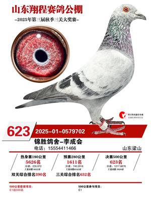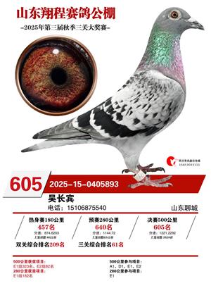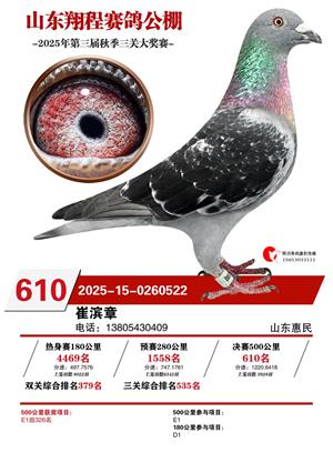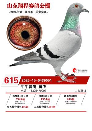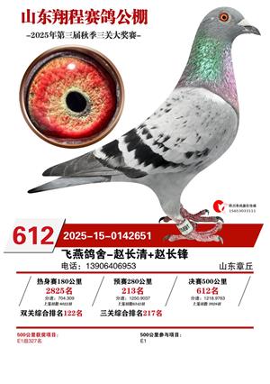 山东翔程赛鸽公棚2025年第三届秋赛获奖鸽照片