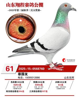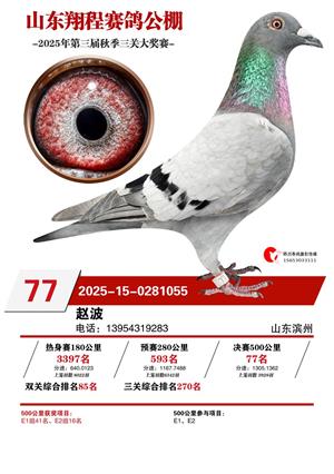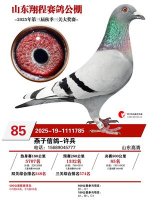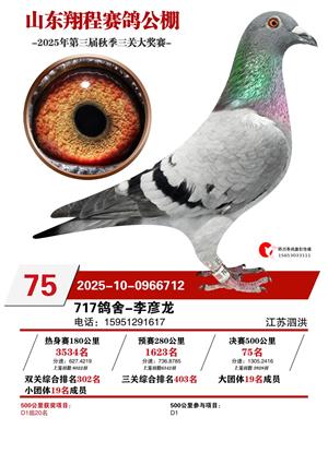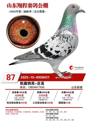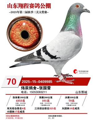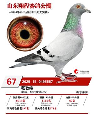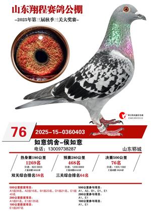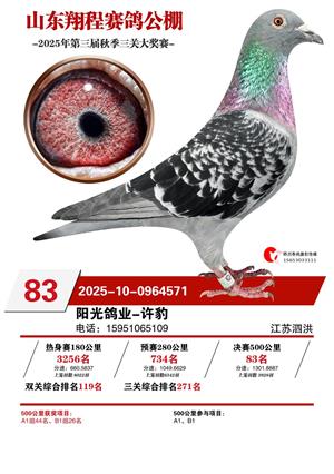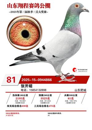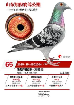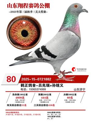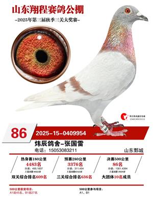 山东翔程赛鸽公棚2025年第三届秋赛获奖鸽照片