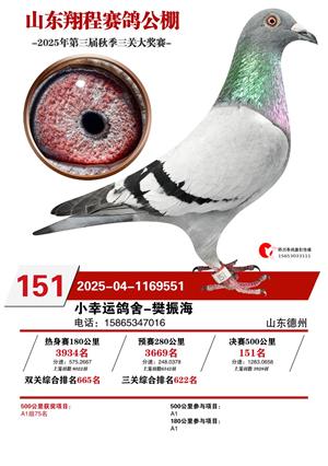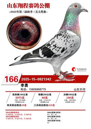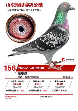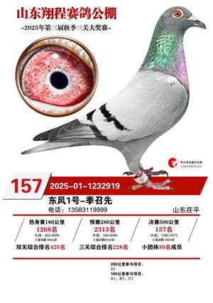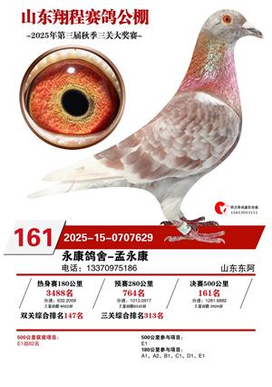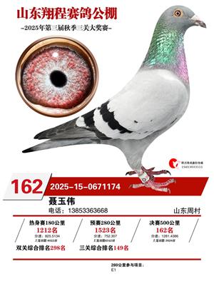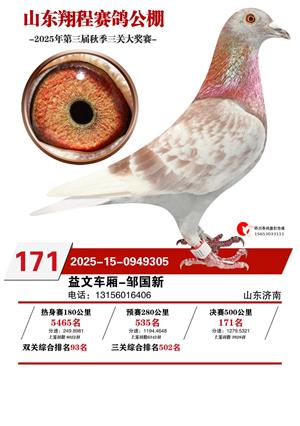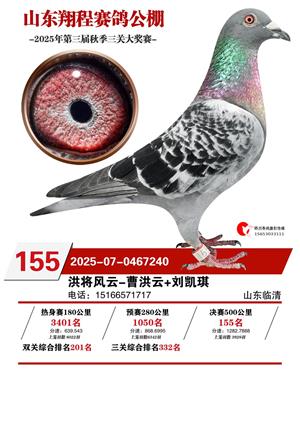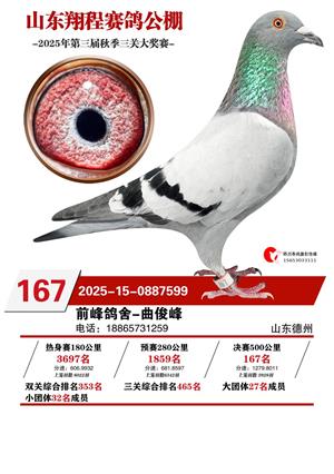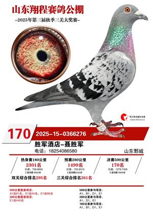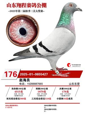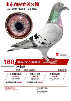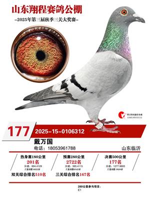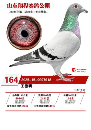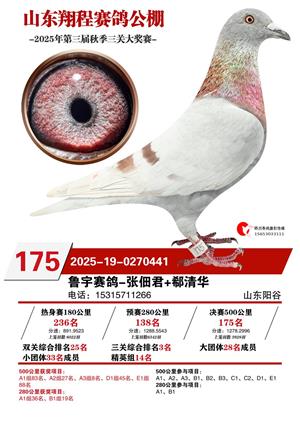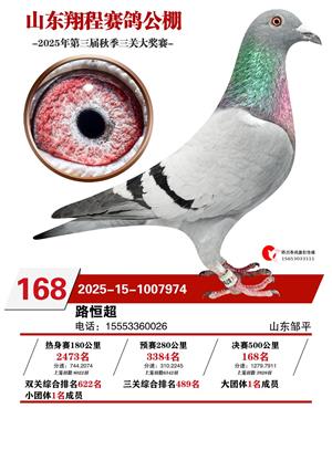 山东翔程赛鸽公棚2025年第三届秋赛获奖鸽照片
