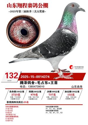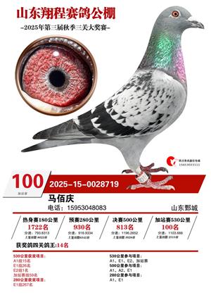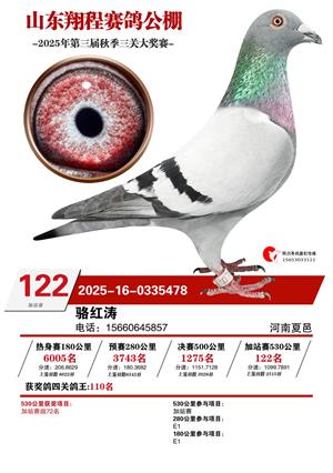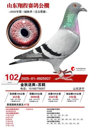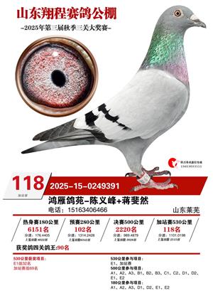 山东翔程公棚2025年第三届秋赛加站赛获奖鸽