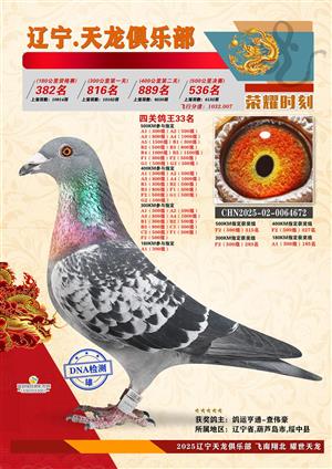 辽宁天龙俱乐部2025年决赛获奖鸽相片