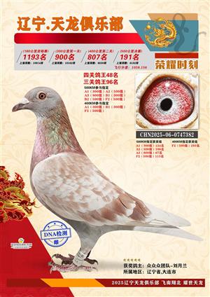 辽宁天龙俱乐部2025年决赛获奖鸽相片