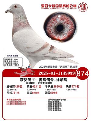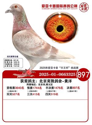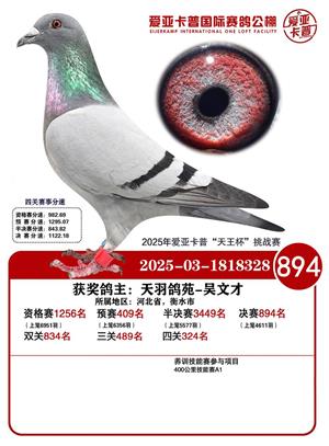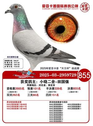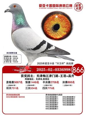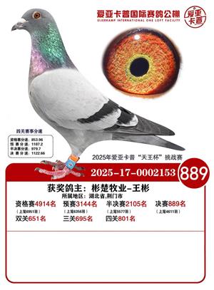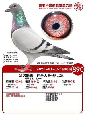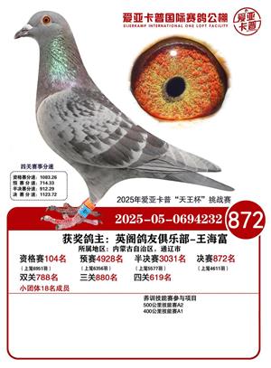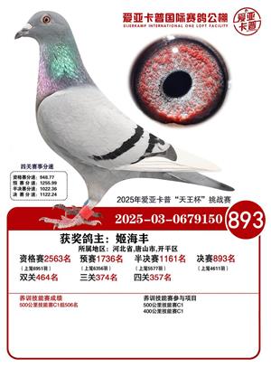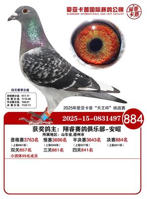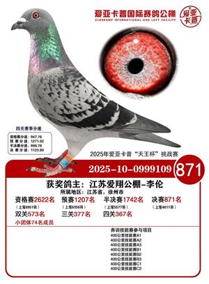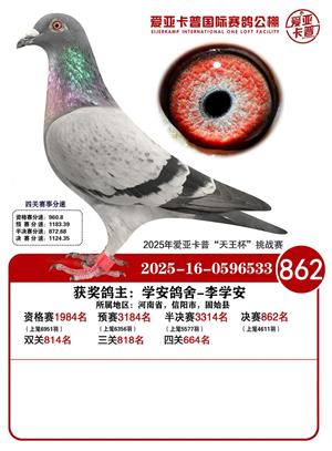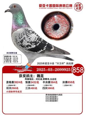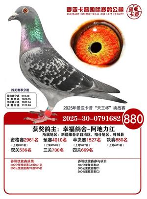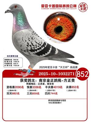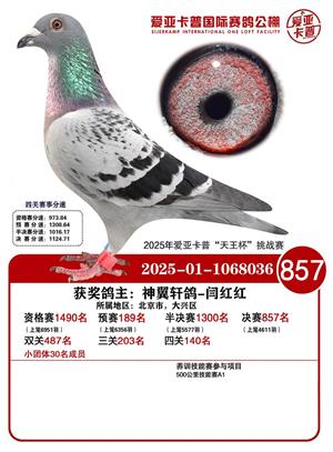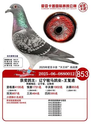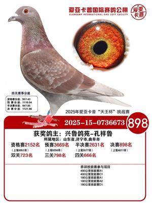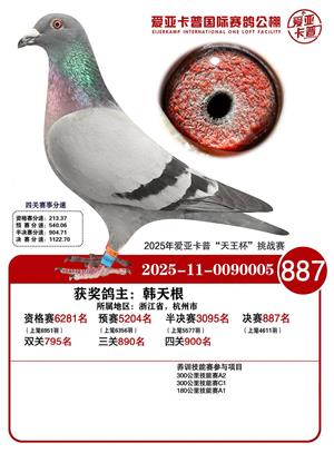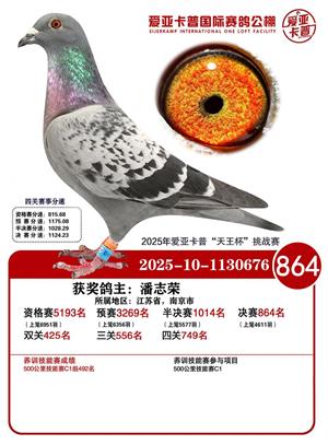 2025爱亚卡普“天王杯”挑战赛前900名获奖鸽赏析