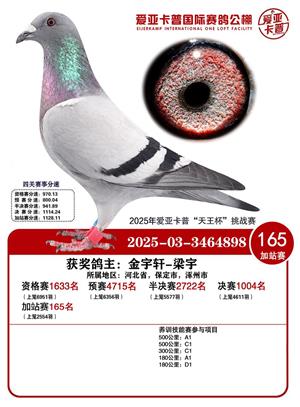 2025爱亚卡普“天王杯”挑战赛加站赛获奖鸽赏析