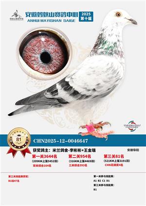 安徽蚂蚁山2025秋决赛获奖鸽赏析
