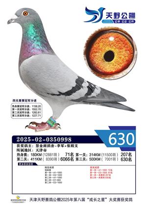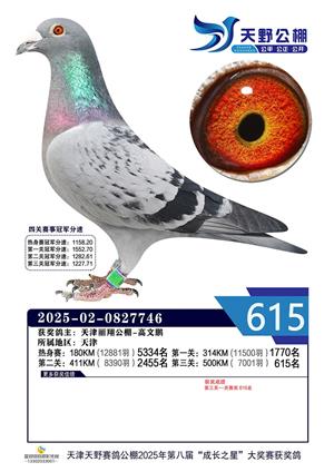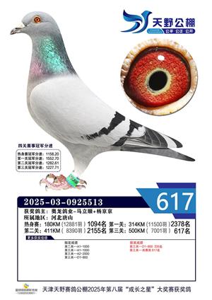 天津天野公棚2025年决赛获奖鸽赏析