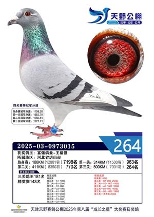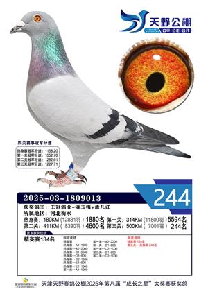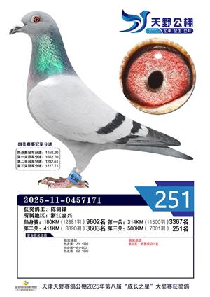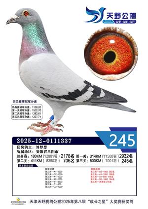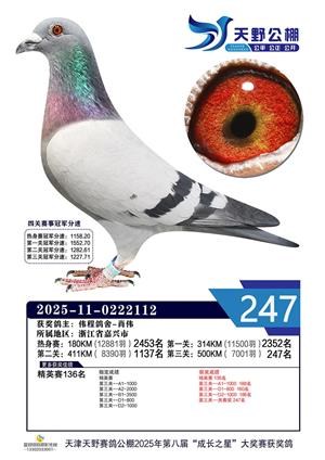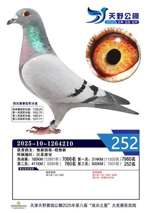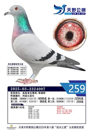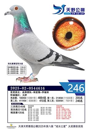 天津天野公棚2025年决赛获奖鸽赏析