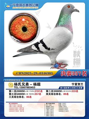 宁夏国力(秋):2025年决赛获奖鸽靓照欣赏(1-500名)
