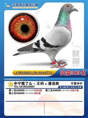 宁夏国力(秋):2025年决赛获奖鸽靓照欣赏(1-500名)