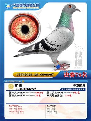 宁夏国力(秋):2025年决赛获奖鸽靓照欣赏(1-500名)