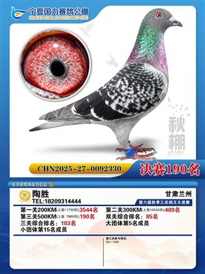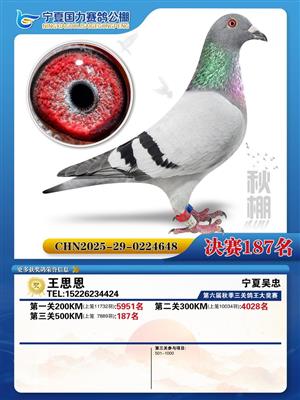 宁夏国力(秋):2025年决赛获奖鸽靓照欣赏(1-500名)
