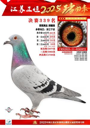 江苏正恒公棚:2025年获奖鸽1-900名图集
