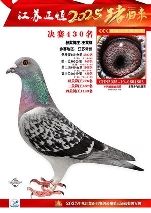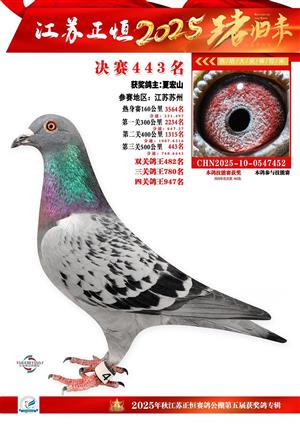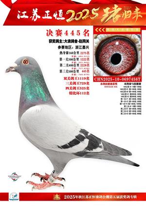 江苏正恒公棚:2025年获奖鸽1-900名图集