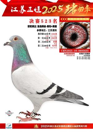江苏正恒公棚:2025年获奖鸽1-900名图集