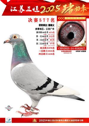 江苏正恒公棚:2025年获奖鸽1-900名图集