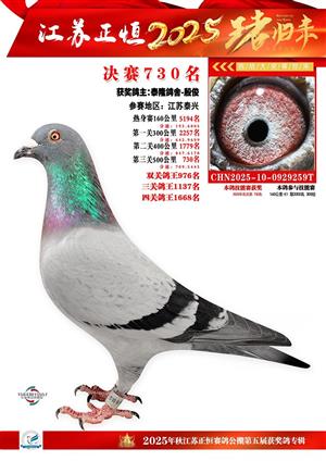 江苏正恒公棚:2025年获奖鸽1-900名图集