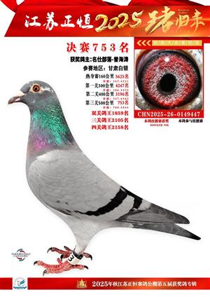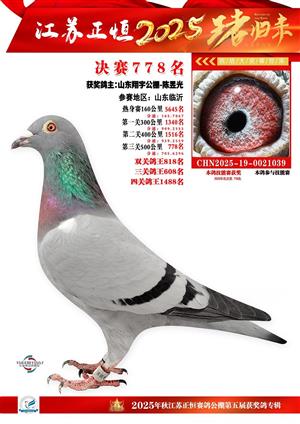 江苏正恒公棚:2025年获奖鸽1-900名图集