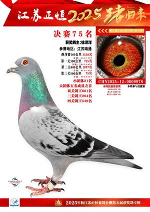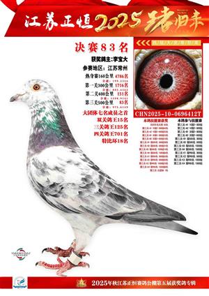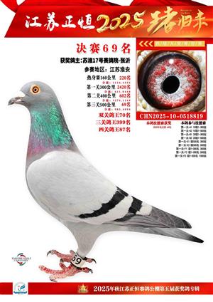 江苏正恒公棚:2025年获奖鸽1-900名图集