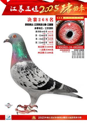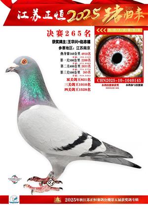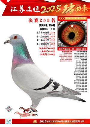 江苏正恒公棚:2025年获奖鸽1-900名图集