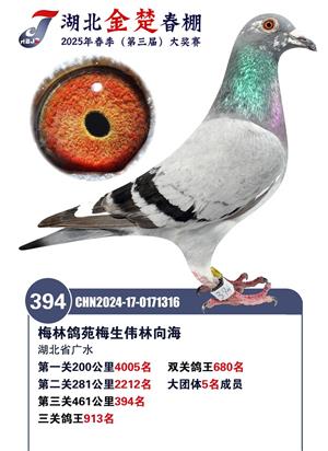 湖北金楚春季赛鸽公棚2025年决赛1-800名