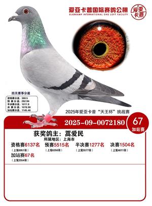 2025爱亚卡普“天王杯”挑战赛加站赛获奖鸽赏析