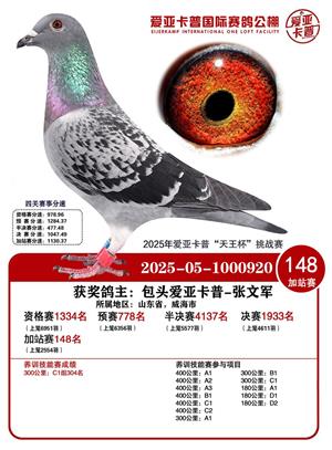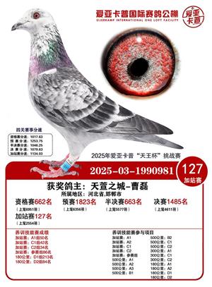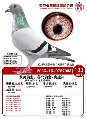 2025爱亚卡普“天王杯”挑战赛加站赛获奖鸽赏析