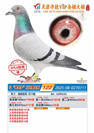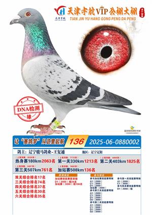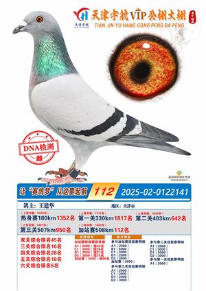 天津宇航VIP大棚2025年加站赛获奖鸽照片