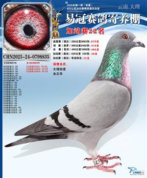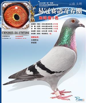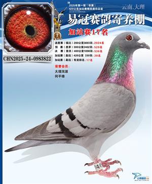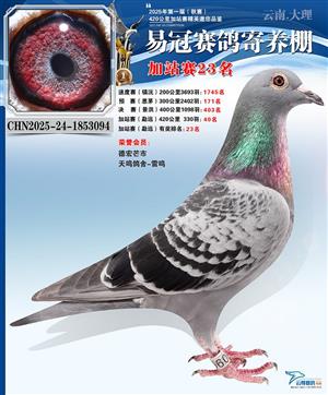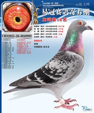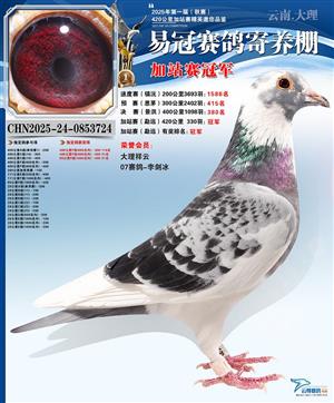 云南易冠赛鸽寄养棚2025年秋季加站赛获奖鸽