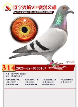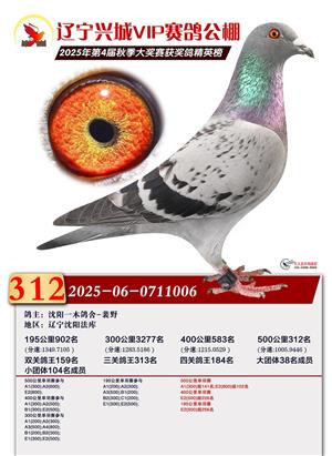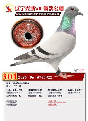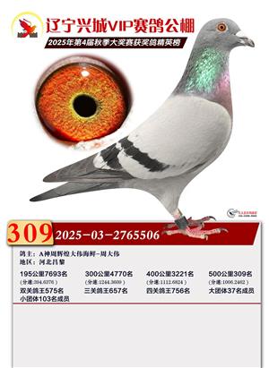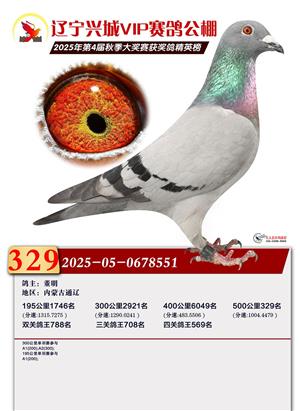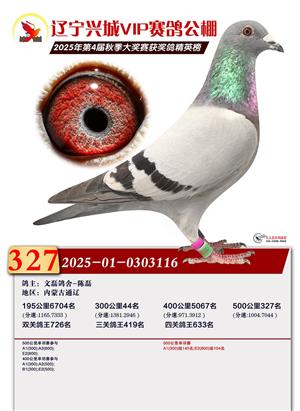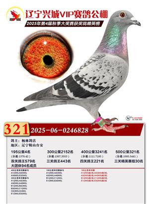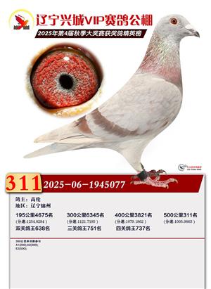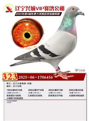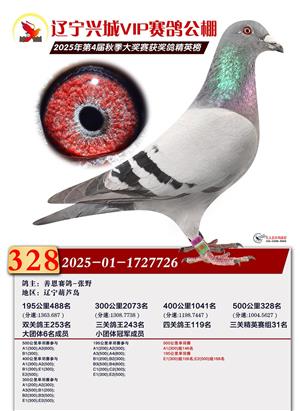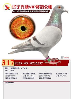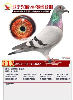 辽宁兴城VIP赛鸽公棚2025年500公里决赛1-800名获奖鸽照片