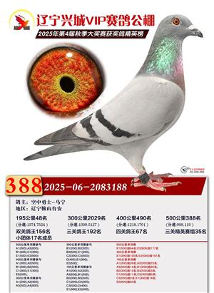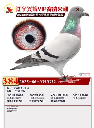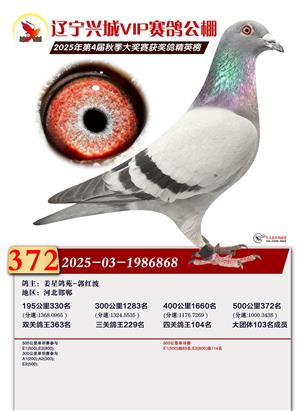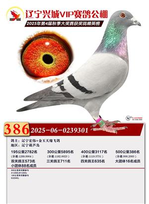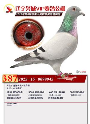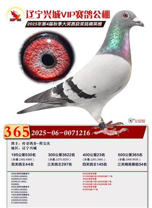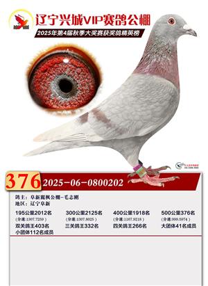 辽宁兴城VIP赛鸽公棚2025年500公里决赛1-800名获奖鸽照片