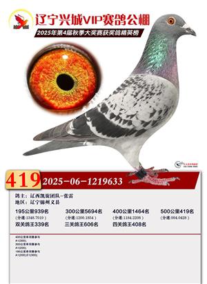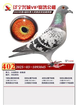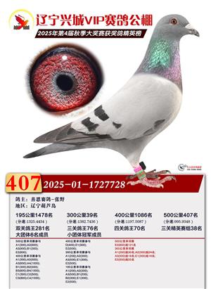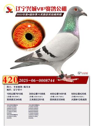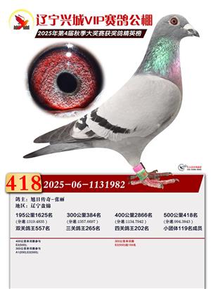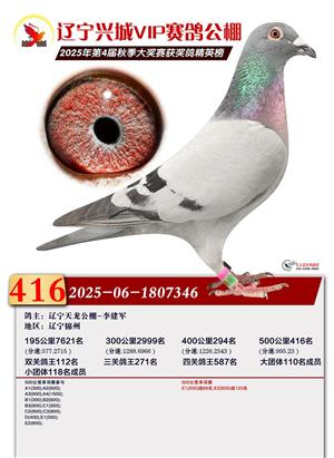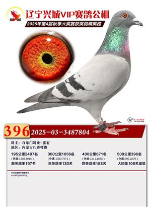 辽宁兴城VIP赛鸽公棚2025年500公里决赛1-800名获奖鸽照片