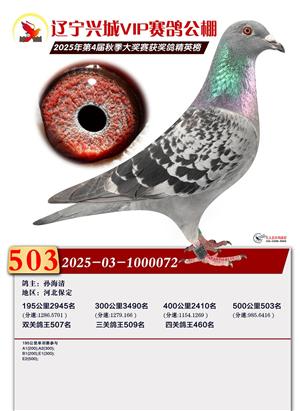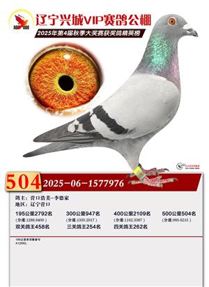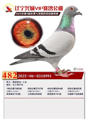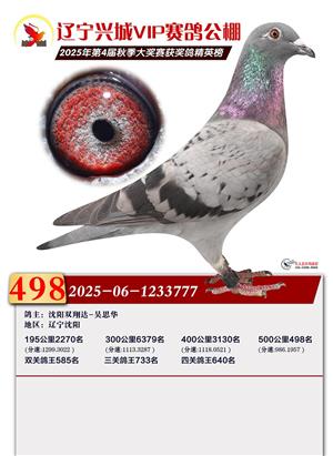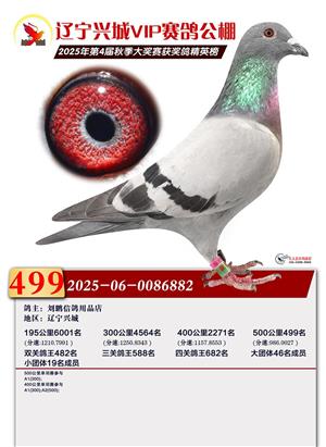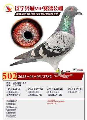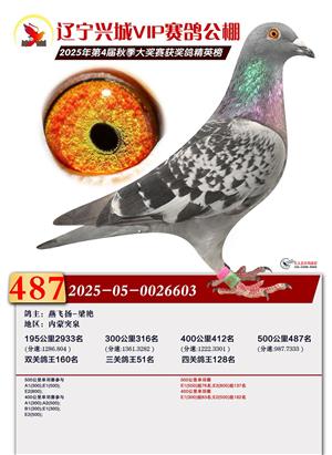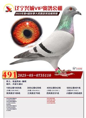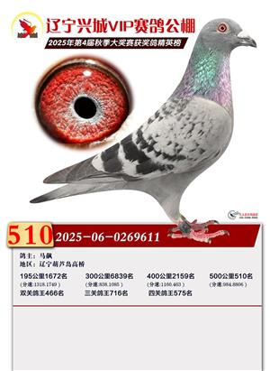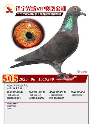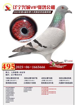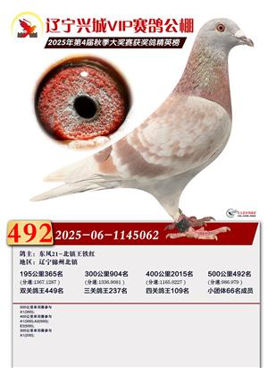 辽宁兴城VIP赛鸽公棚2025年500公里决赛1-800名获奖鸽照片