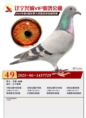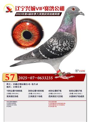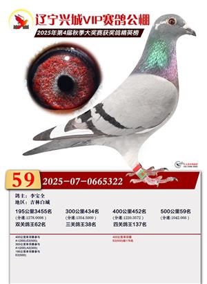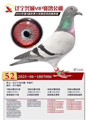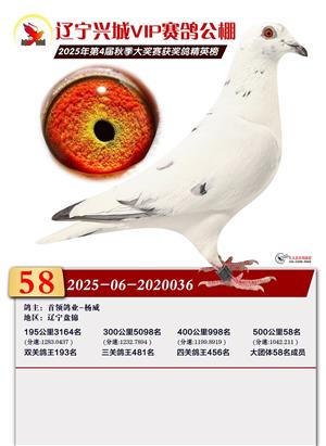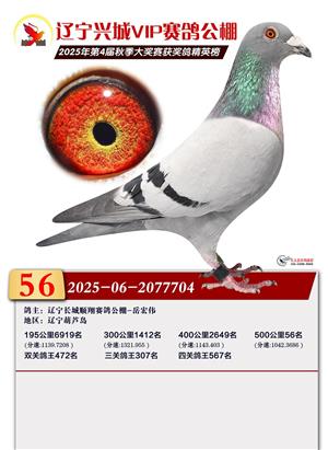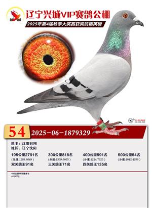 辽宁兴城VIP赛鸽公棚2025年500公里决赛1-800名获奖鸽照片