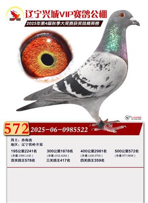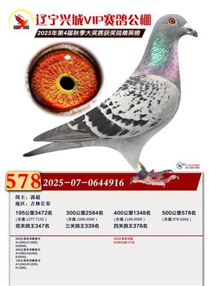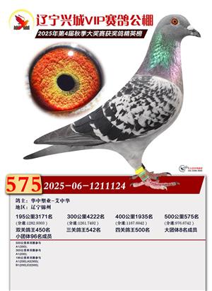 辽宁兴城VIP赛鸽公棚2025年500公里决赛1-800名获奖鸽照片