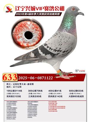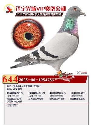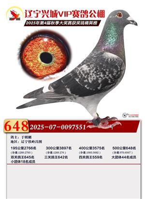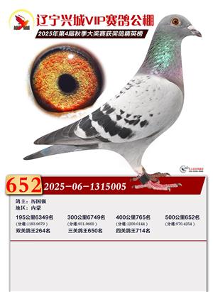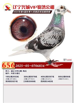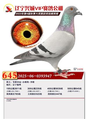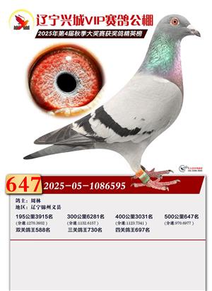 辽宁兴城VIP赛鸽公棚2025年500公里决赛1-800名获奖鸽照片