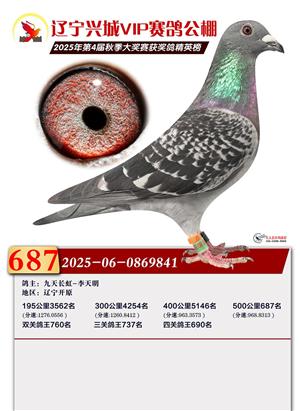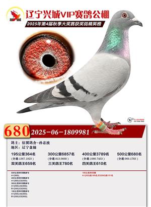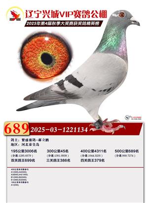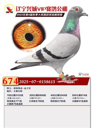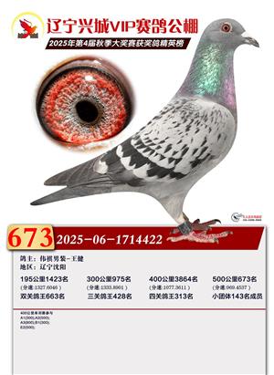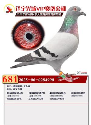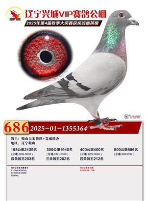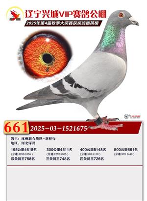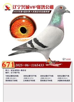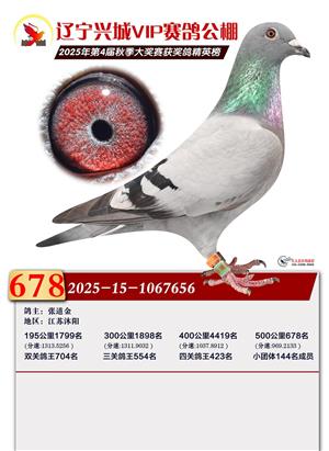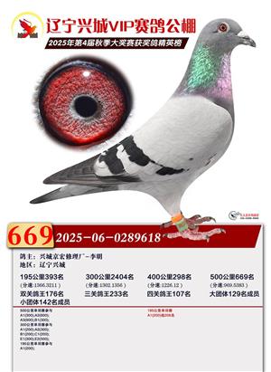 辽宁兴城VIP赛鸽公棚2025年500公里决赛1-800名获奖鸽照片