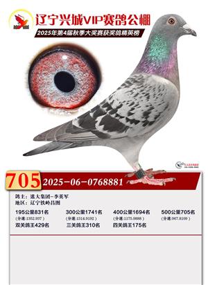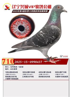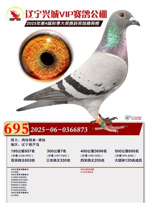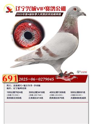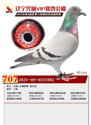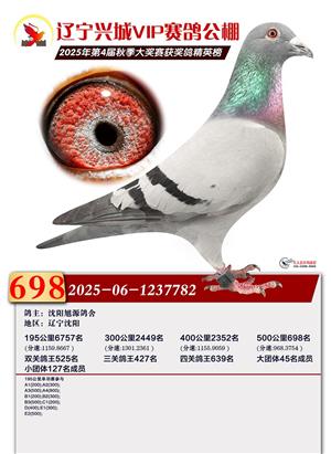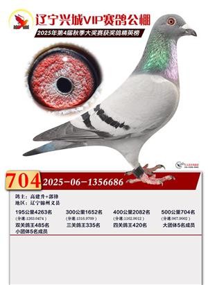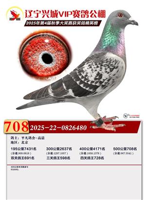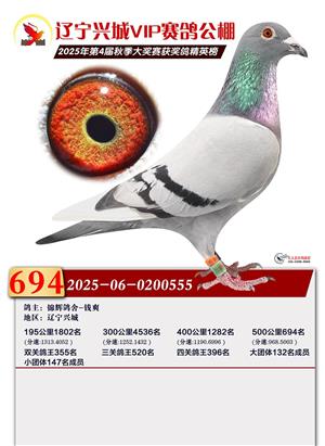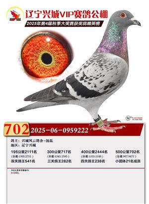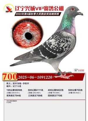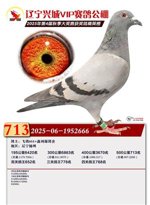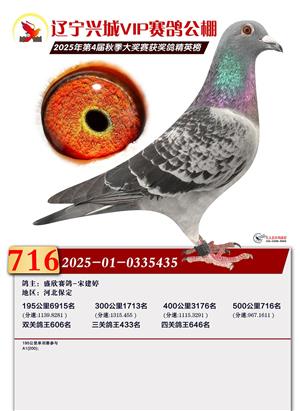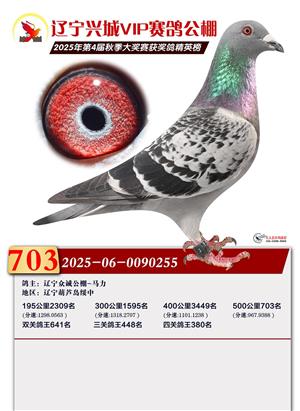 辽宁兴城VIP赛鸽公棚2025年500公里决赛1-800名获奖鸽照片