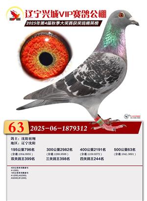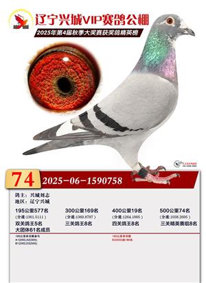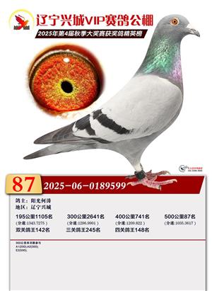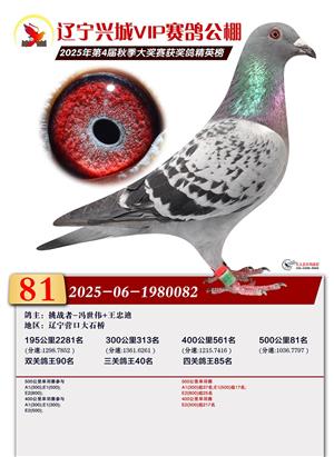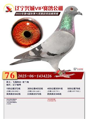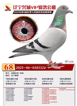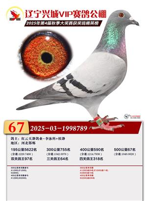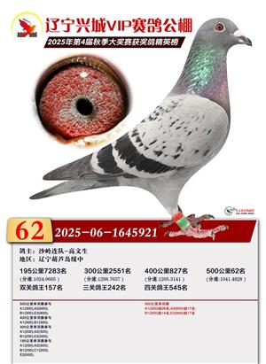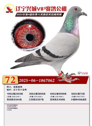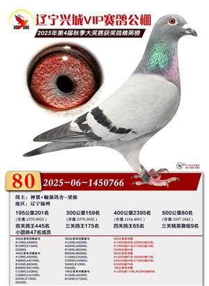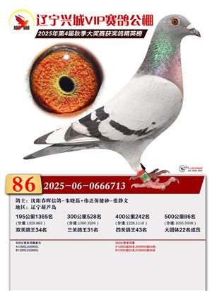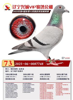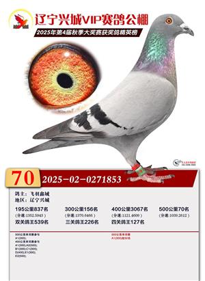 辽宁兴城VIP赛鸽公棚2025年500公里决赛1-800名获奖鸽照片