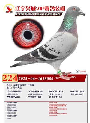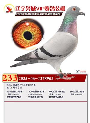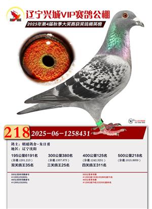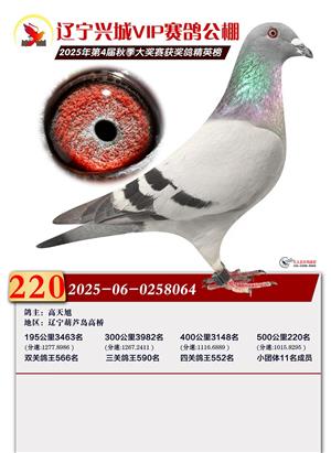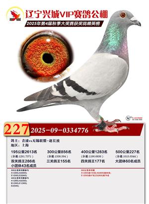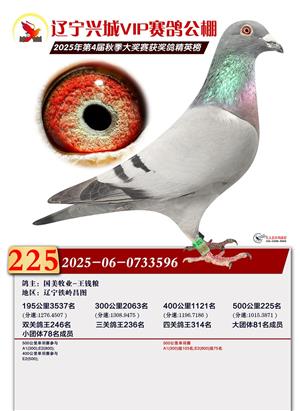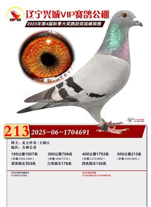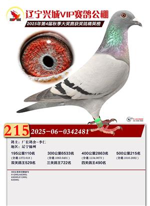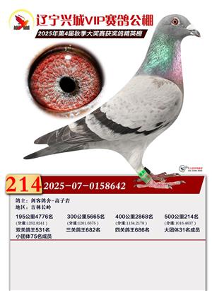 辽宁兴城VIP赛鸽公棚2025年500公里决赛1-800名获奖鸽照片